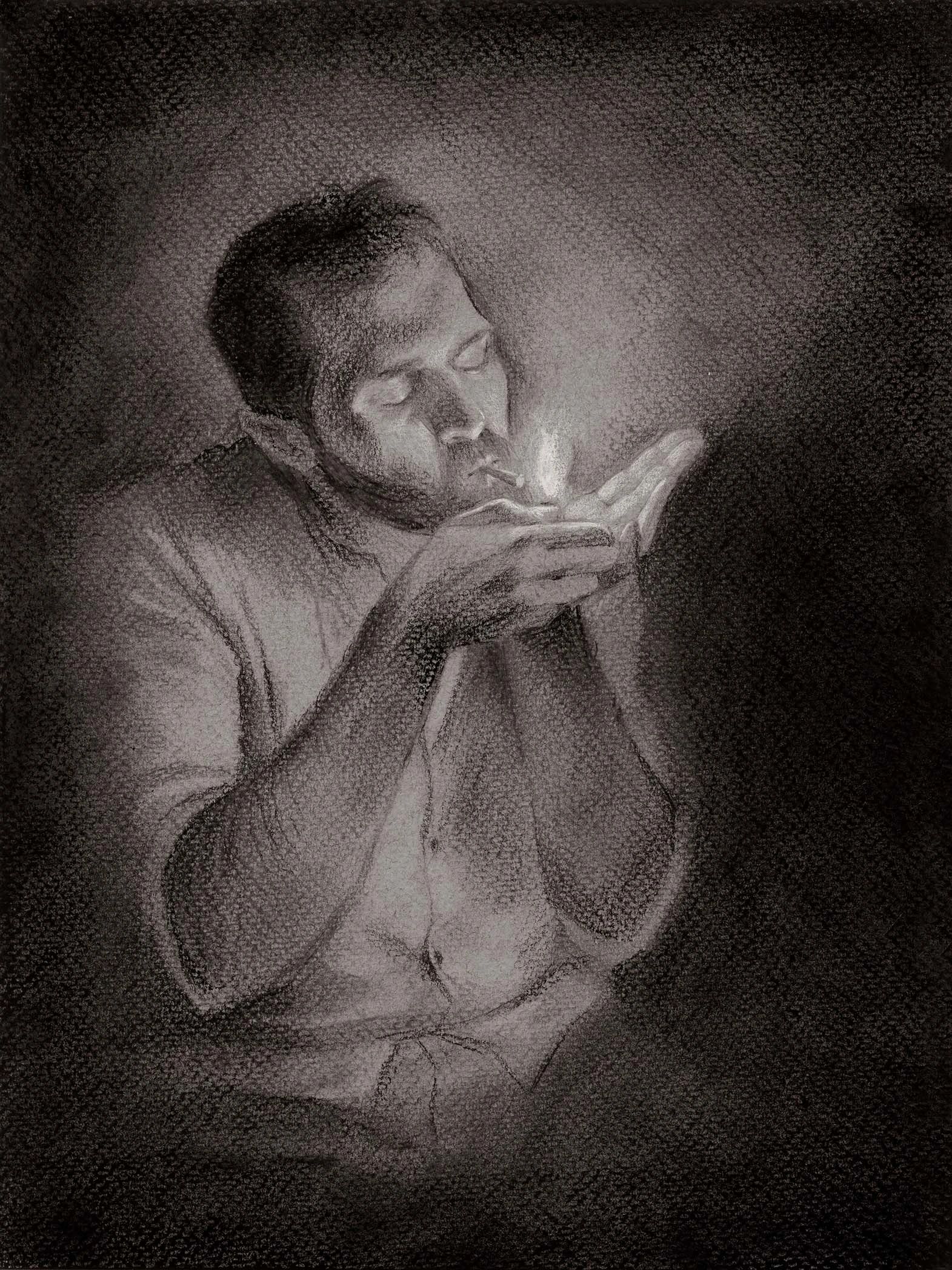 2023, Charcoal, pencil, & white chalk on paper, 9x12 in (42x29.5 cm)