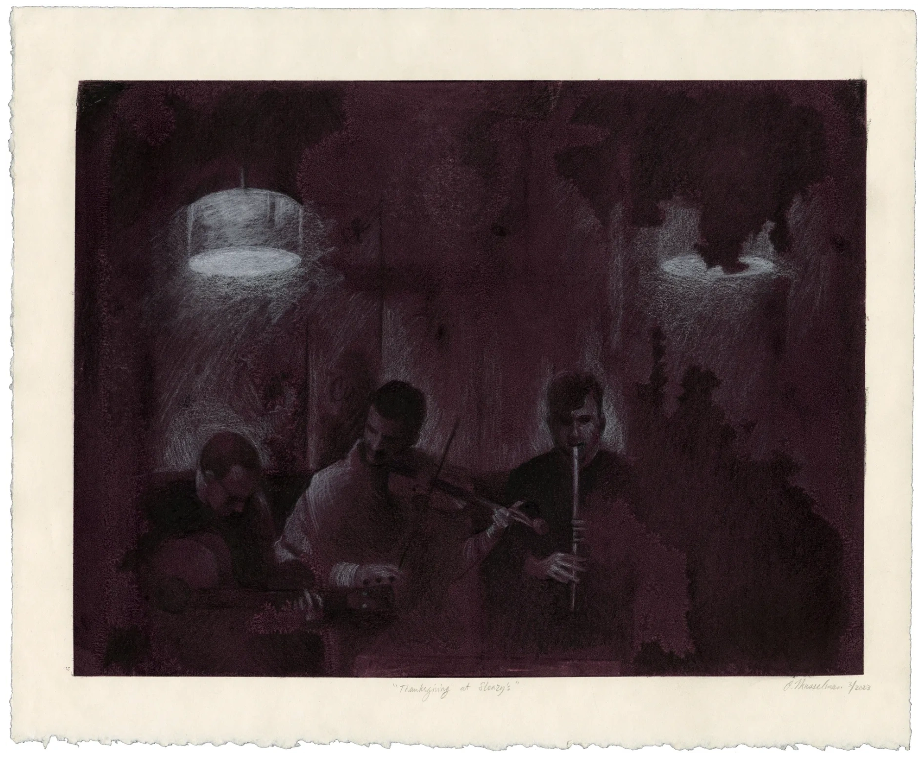 2023, Black wax pencil and white chalk on monotype, 28.5x34.25 cm